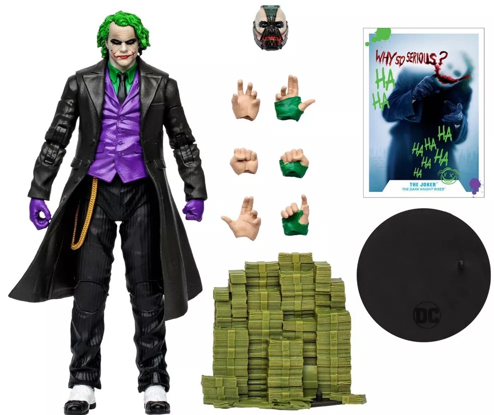 • The Joker comes with a stack of cash, Bane build-a figure hands, head and base